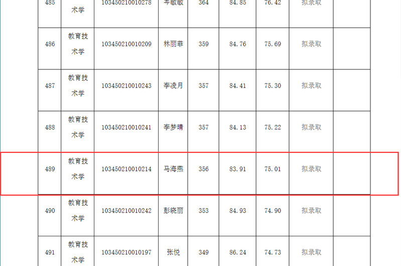 5月19日,浙江师范大学教师教育学院公布了2020年硕士研究生统考招生拟录取名单,伟德官网16级教育技术学专业学生马海燕拟被浙江师范大学教师教育学院教育技术学专业录取。