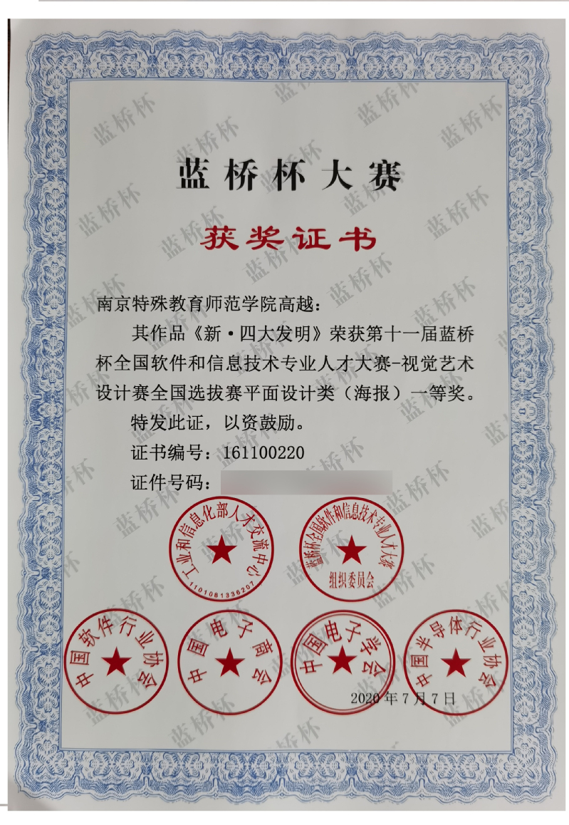 近期,第十一届蓝桥杯视觉艺术设计大赛全国选拔赛落下帷幕。伟德官网学子在本次“蓝桥杯”中获得江苏省平面设计类一等奖一项,二等奖两项,三等奖三项,优秀奖两项;江苏省视频设计类二等奖一项,三等奖一项,成绩喜人。