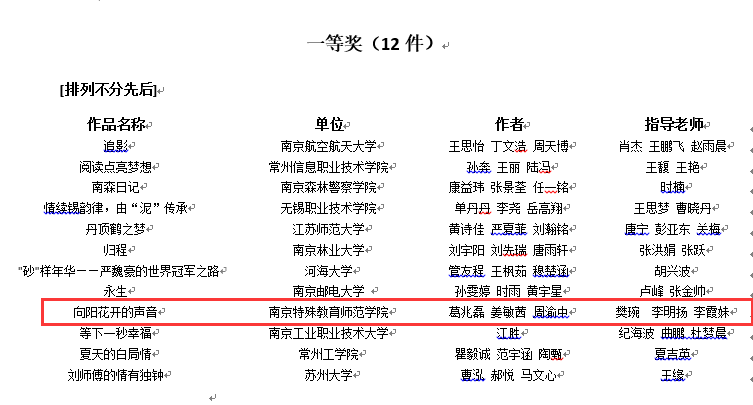 .近日,江苏省教育厅网站公布江苏省第六届大学生艺术展演获奖名单。数信与信息科学学院报送的两部微电影作品《向阳花开的声音》、《新时代的新一天》在一众作品中脱颖而出,分别斩获一等奖、三等奖。