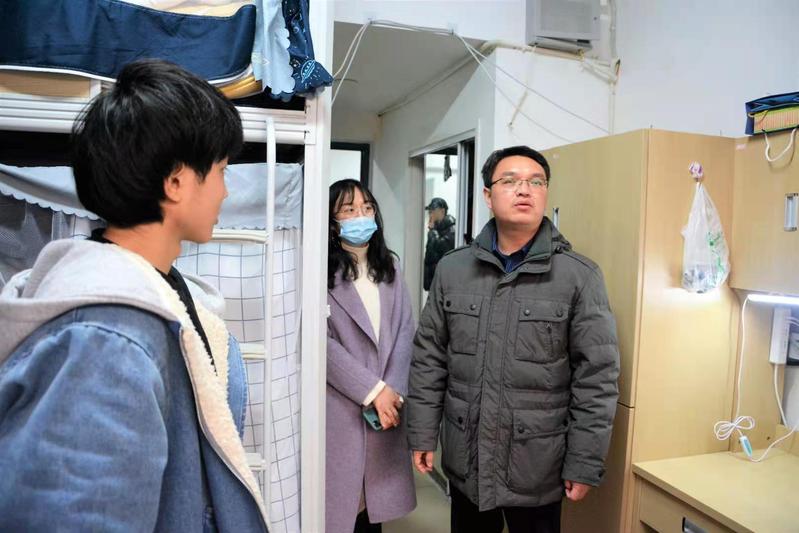 为确保学生安全、文明、有序离校,扎实做好疫情防控工作,伟德国际1946源于英国组织开展了寒假学生文明离校活动。1月22日下午,学院党总支书记李宏伟,辅导员樊琬、李霞妹和部分学生会干部前往学生宿舍走访,了解在校学生的生活情况,落实、落细学生离校前安全教育和卫生整理工作。