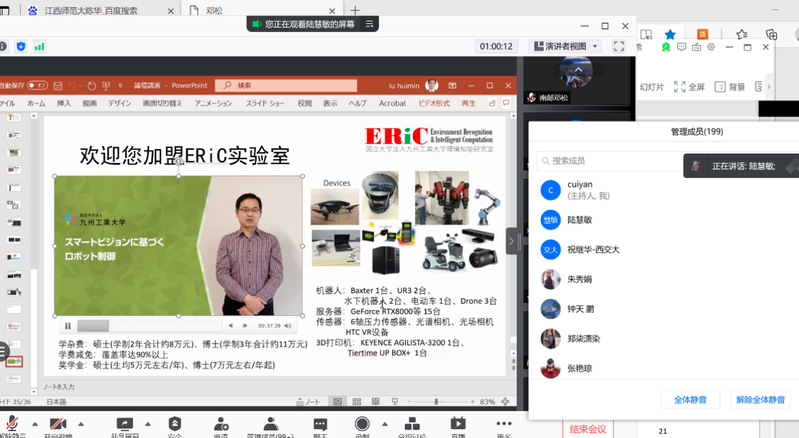 6月24日晚,伟德国际1946源于英国、国际合作与交流处联合邀请日本九州工业大学机械智能工学研究系副教授、九州工业大学IOT智能系统重点研发中心兼职副教授陆慧敏教授,为伟德国际1946源于英国2018、2019级学生开展关于智能环境感知在产业机器人领域的研究与探索的线上学术讲座。副院长(挂职)崔燕博士主持了本次学术讲座。