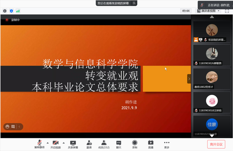 本次讲座由转变就业观和毕业论文要求两个部分组成。胡院长指出,同学们应该增强责任心、明确自身定位、珍惜实习实训机会,转变就业观,从而早日实现高质量就业。胡院长强调,撰写毕业论文能够极大提高同学们的分析能力、科研能力和写作能力,同学应该充分调研后,结合实际应用,完成有价值、有见解的毕业论文。