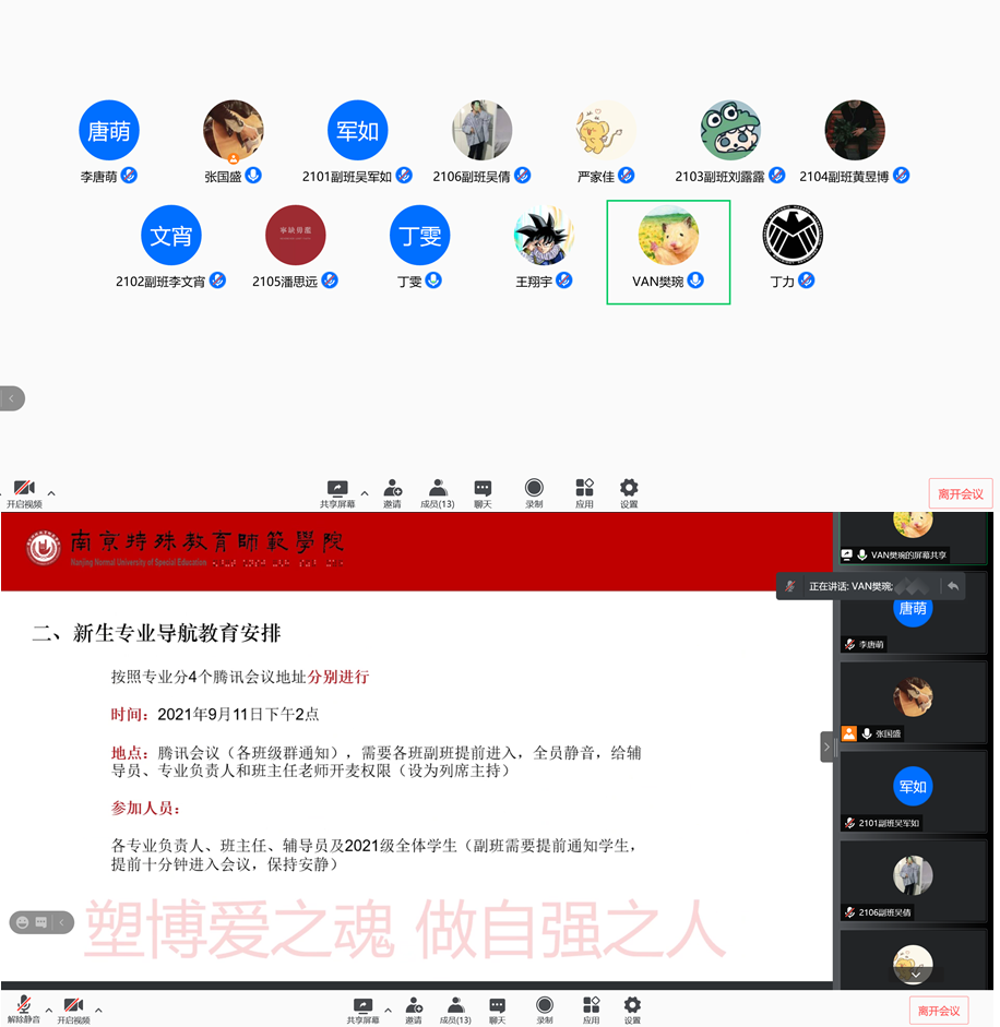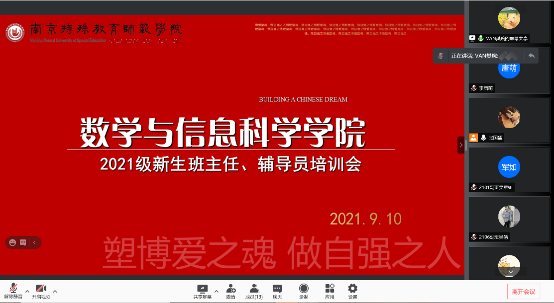 为做好2021级新生专业导航教育,明确班主任、辅导员的职责,提高新生线上教学工作水平,9月10日晚,伟德国际1946源于英国召开了2021级新生班主任、辅导员培训会。培训会由学院辅导员樊琬主持,学院党总支副书记丁雯,2021级辅导员、班主任和副班参与此次培训会。