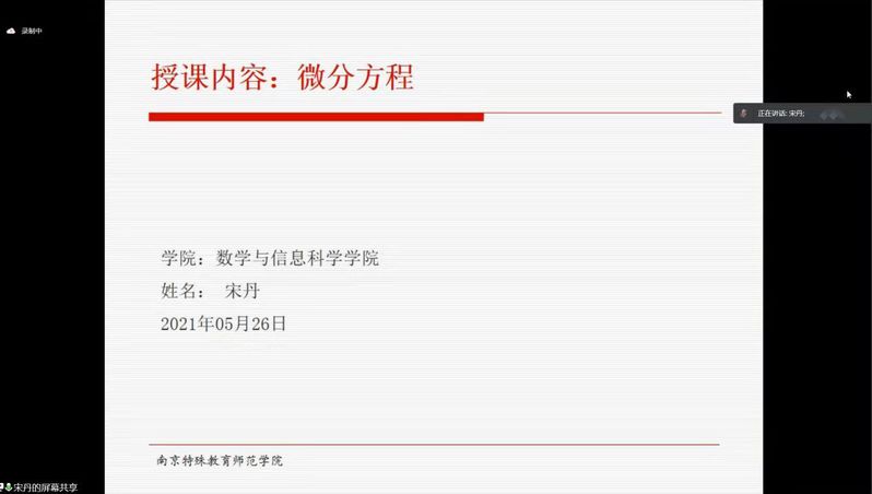 在首先开展的授课环节,宋丹老师以高等数学中的《微分方程》为例进行“精彩一课”分享。对于教学课件中的重点、难点,宋老师讲课深入浅出,条理清晰,通过简单而明晰的例题帮助学生迅速明白晦涩难懂的数学定义与公式。