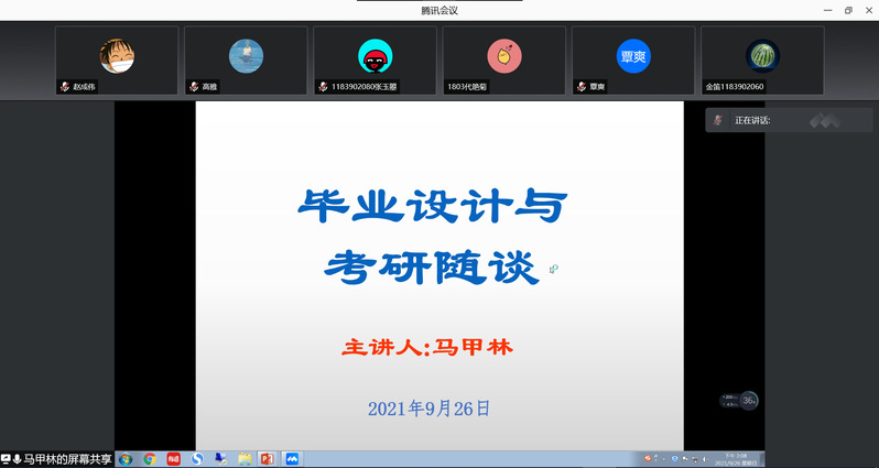 9月26日下午,伟德国际1946源于英国邀请淮阴工学院马甲林老师开展线上“计算机专业毕业论文撰写及考研随谈”讲座,本次讲座由副院长张居晓主持,2018级计算机科学与技术(嵌入式培养)专业的学生全程参加讲座。