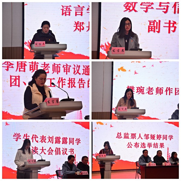 学院团总支副书记樊琬代表学院上一届委员会作题为《博爱筑梦,青春建功,在实践创新中书写青春篇章》的工作报告,总结了学院团总支在思想引领、创新创业、社会实践、志愿服务、校园文化活动等方面取得的成果和经验,阐述了新时代共青团事业面临的新形势、新要求,对今后五年学院共青团工作作了全面部署:一要坚持立德树人,引领团员青年牢固树立中国特色社会主义共同理想;二要强化实践育人,率领团员青年积极为社会发展作贡献、长才干;三要涵养文化育人,带领团员青年共同构筑和谐博爱的文化氛围;四要落实从严治团,夯实基层团建,增强组织活力,改革创新加强团的自身建设。