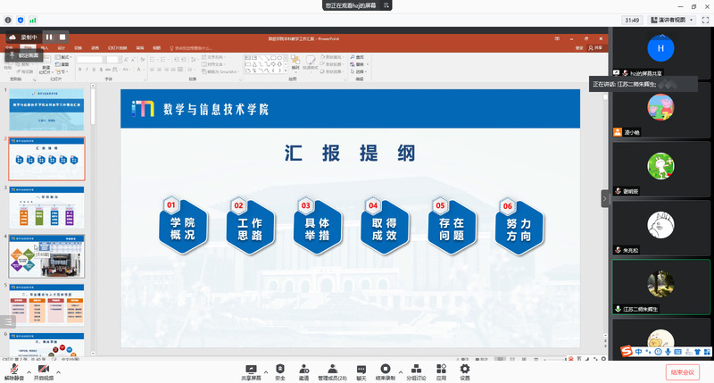 为了做好本科教学合格评估各项工作,12月3日下午伟德国际1946源于英国邀请江苏第二师范学院数学与信息技术学院院长朱辉生作本科教学合格评估解读讲座,伟德官网全体教职员工通过网络参加了讲座。会议由院长胡作进主持。