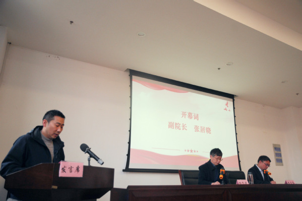 大会在庄严的国歌声中开幕,副院长张居晓致开幕词,宣读本次大会主题为:“凝心聚力,砥砺前行,全面开启学院高质量发展新征程”。张院长指出,本次大会主要任务是深入贯彻习近平新时代中国特色社会主义思想、党的十九大精神和十九届二中、三中、四中、五中、六中全会精神,认真总结学院 2021年的工作,确定学院2022年及今后一段时间的工作任务和实施方案。张院长介绍了大会的议程,主要是听取并审议学院工作报告、分工会工作报告、分工会委员调整名单,听取学院财务报告、提案工作报告等。张院长强调,学院正处于一个发展关键时期,我们应秉承和发展优良传统,充分发挥教职工大会和分工会的作用,紧紧依靠广大教职工的智慧与力量,确保各项工作取得全面提高,为促进学院高质量发展提供不竭的源泉和坚强的动力。