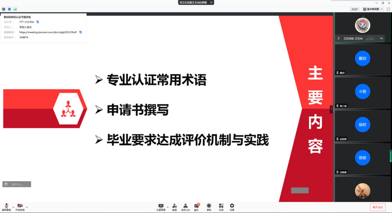 王教授围绕“师范认证常用术语”、“申请书撰写”以及“毕业要求达成评价机制与实践”几个命题,从师范认证的意义、认证流程、认证逻辑、认证理念等方面展开全面深入地解读。 王教授指出,在师范生培养过程中,需聚焦主线(反向设计)和底线(正向施工),以产出为导向,形成培养目标、毕业要求和课程目标三个层次的精准定位,并就培养目标及毕业要求的逻辑关系进行了详细的论证。申请书撰写方面,王教授针对申请书撰写的新旧要求展开了细致地对比分析,为后期专业认证准备工作提供了专业且前沿的方向指导。毕业要求达成评价机制与实践方面,王教授从毕业要求达成评价机制的整体表述、说明评价所采用数据的合理性、课程目标达成度的计算案例以及课程目标达成的改进几个方面,理论联系实际地进行论证。之后,王教授还与教师们围绕师范认证的相关问题进行了交流与答疑。