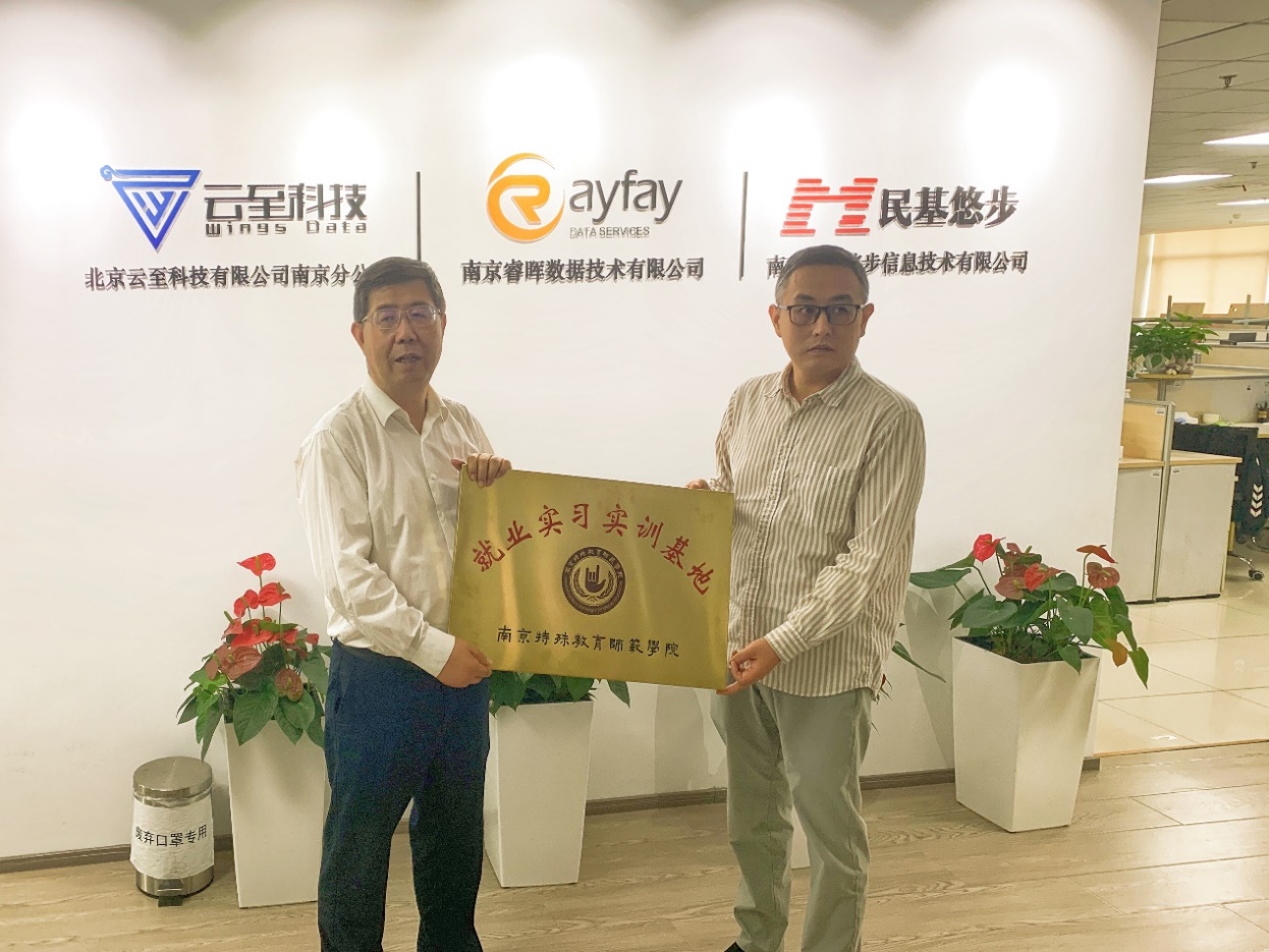 经过交流,伟德国际1946源于英国与南京睿晖数据技术有限公司签订了院企合作协议。依据协议,未来双方将重点围绕伟德官网数据科学与大数据技术专业的人才培养、就业实习、教学科研等展开深度合作;华兴夏副校长与公司总经理刘辉共同为“南京特殊教育师范学院就业实习实训基地”揭牌。