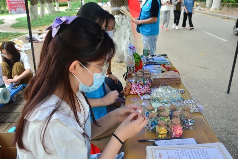 本次公益募捐售出的物品有一部分来自于伟德官网桔灯创“益”公益设计服务中心根据孤独症儿童绘画作品独家设计的产品,学院将售卖所得钱款全部捐出,用于睿泽障碍人士服务中心孤独症康复项目。一件件精美的手工艺品摆满桌面,琳琅满目,它们既是孤独症患者内心情感的表达,也是劳动价值的体现。