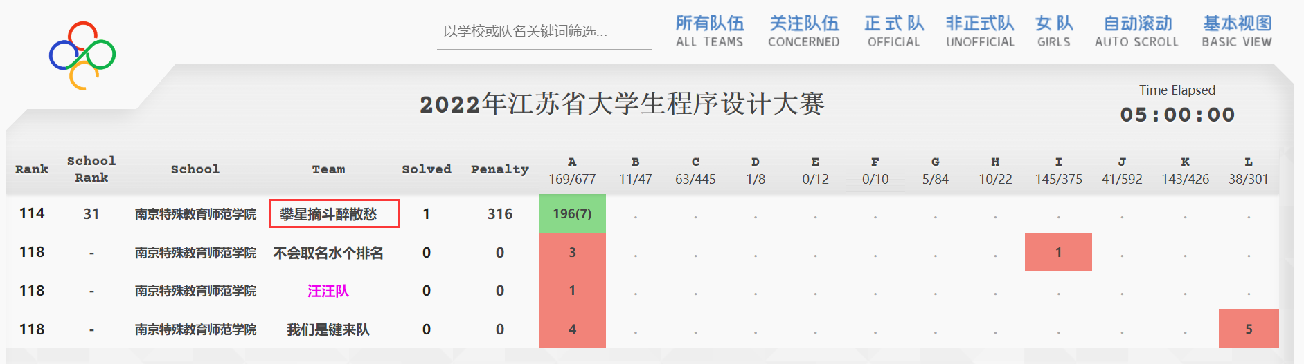 5月28日,2022年江苏省大学生程序设计大赛正式开赛。南京大学、东南大学等全国49所高校共计200支队伍(含62支打星队)参加比赛,最终决出金奖14 项、银奖28项、铜奖41项。伟德官网学子首次参加省级高水平编程比赛,与49所高校学子同台竞技,展现了伟德官网学子立志高远、积极进取的创新精神。其中2020级数学与应用数学专业李佳乐、2020级数据科学与大数据技术专业周彬、2021级计算机科学与技术专业周彬怡组成的“攀星摘斗醉散愁”队斩获优秀奖,实现了伟德官网在该项赛事上新的突破。