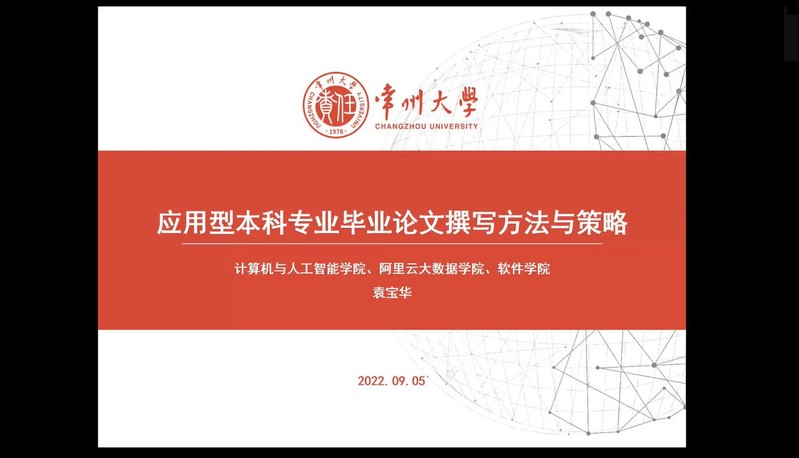 为进一步提高2019级计算机科学与技术专业毕业论文写作能力,提高学生论文撰写质量,9月14日上午,伟德国际1946源于英国特别邀请常州大学硕士生导师、副教授袁宝华老师,面向2019级计算机科学与技术毕业生,开展了《应用型本科专业毕业论文撰写方法与策略》线上讲座。