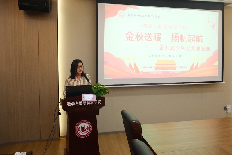 党总支副书记丁雯老师对本次大会进行总结,她表示学生工作离不开学生干部的支持,她希望竞选成功的新一届学生会干部们都能扎扎实实地开展工作,做好榜样带头作用,为自身成长成才、学院建设与发展做出贡献!