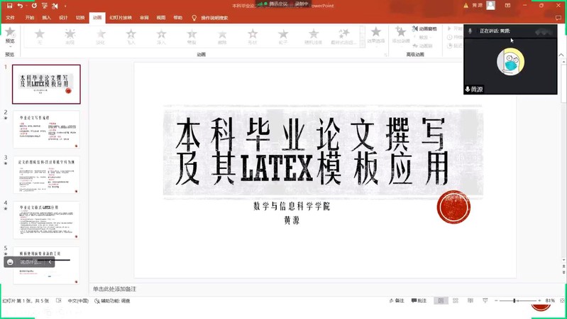 为规范和统一伟德官网的毕业论文规范和格式,提高学生毕业论文写作效率,922日晚,伟德官网邀请东南大学博士后黄源老师,面向2019级全体毕业生开展了《LaTeX编辑毕业论文》线上讲座。