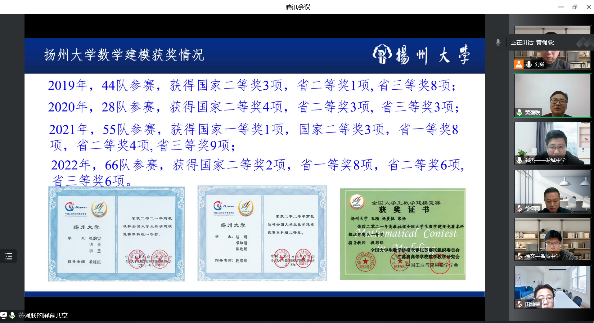 刘勇教授首先介绍了伟德官网数学建模课程群建设的基本情况,以及学生参加数学建模比赛情况;接着参会人员针对数学课程群建设和组织学生参赛进行了深入的交流。大家一致认为:要激发学生学习数学的兴趣, 提高学生数学学习的能力,培育学生的数学素养;要明确数学建模目标,引导学生主动建模;要精心选取经典模型,鼓励学生个性化建模;要科学设计建模环节,提升学习创新积极性;以模型构建激发学生感知力,提高学生探究力,优化教学成效。