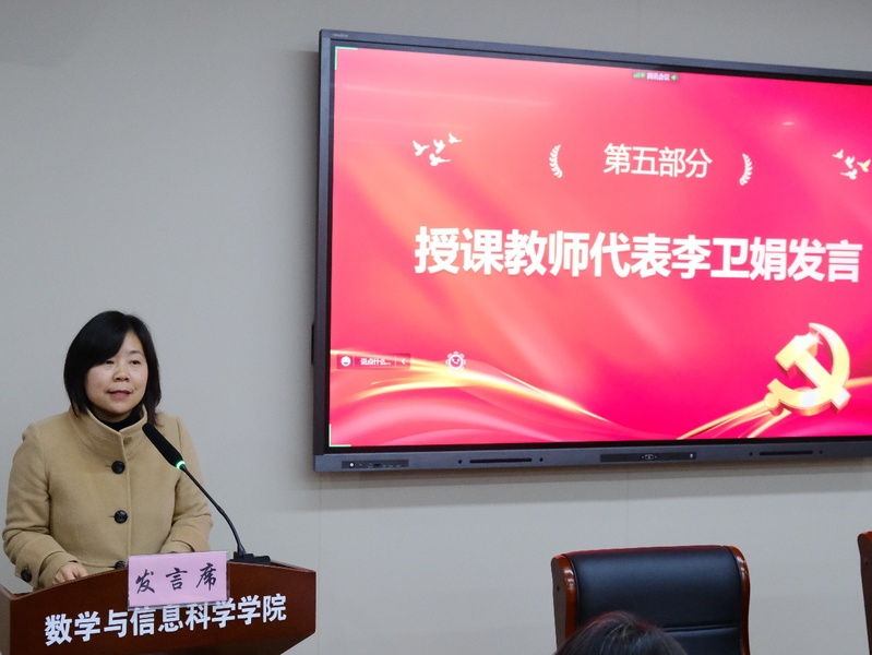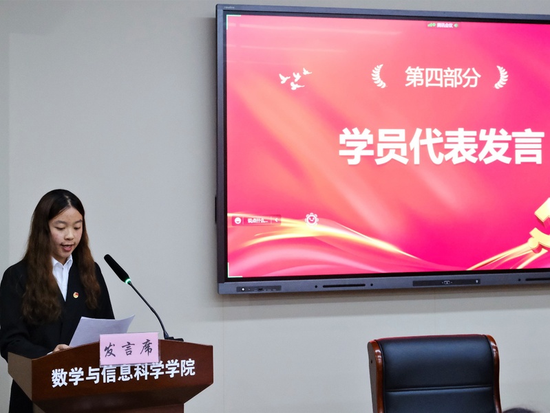 数信2103班孔佳同学代表全体学员发言。她表示,要认真学习党的二十大报告的内容和精神,不断提高思想道德修养,以党员的标准要求自己,把自己塑造成为一个有理想、有抱负、有文化、有思想的“四有新人。