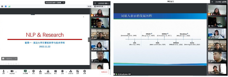 崔荣一教授作了题为“NLP & Research”的学术报告,深入介绍了自然语言处理的前沿技术PTLM,提出加入知识或结合知识图谱的创新方法,进一步研究模型在中文语言处理中的应用。崔教授还指出科研与教学工作是相辅相成的,作为一名合格的高校教师,应该将两者结合起来,既提高自身的科研水平又将科研成果应用于教学过程。