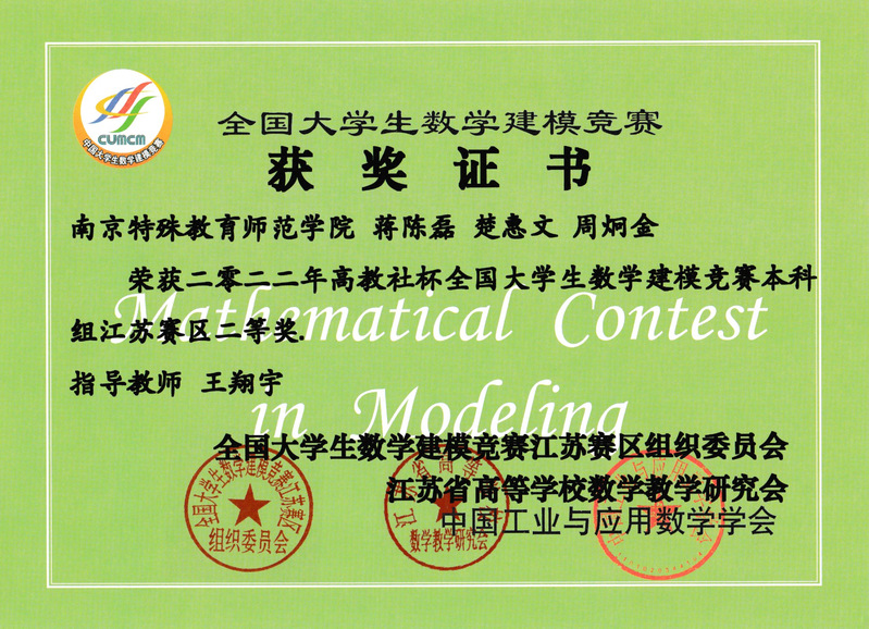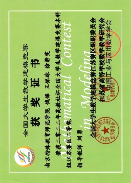 全国大学生数学建模竞赛中,伟德官网取得了江苏赛区二等奖2项、三等奖2项的优异成绩。该项比赛旨在激励学生学习数学的积极性,提高学生建立数学模型和运用计算机技术解决实际问题的综合能力,培养创造精神及合作意识。