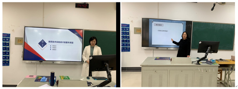 每次活动安排两位主讲教师,讲授45分钟完整一节课。教研室主任刘艳菊老师主讲的《计算机组成原理》和《信息技术课标与教材研究》,姚建东老师主讲的《现代教育技术》;蒋小艳老师主讲的《信息技术课程与教学论》和《教育技术学前沿问题》,昂娟老师主讲的《教育传播学》、《教育技术研究方法》,戴玥老师《多媒体平面设计》。