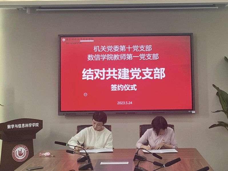 会议伊始,双方党支部书记简单介绍了各自所在党支部的基本情况,双方都表达了结对共建的良好愿望,希望在以后的共建活动中能够集思广益,开创“资源共享、优势互补、互相促进、共同提高、打造品牌”的党建工作新格局。随后两位党支部书记作为代表签署了共建合作协议,两个党支部的成员共同拍照留念。签约仪式后,机关党委第十党支部张正娟老师向数信院老师展示了学校最近刚上线的“智慧报账”的操作方法,及时解答了老师对于智慧报账的疑问,加强了两个支部间的交流。