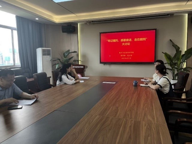 6月7日下午,伟德国际1946源于英国教师第一党支部开展了“牢记嘱托、感恩奋进、走在前列”集中交流研讨会。会议由教师第一党支部书记戴玥主持。
