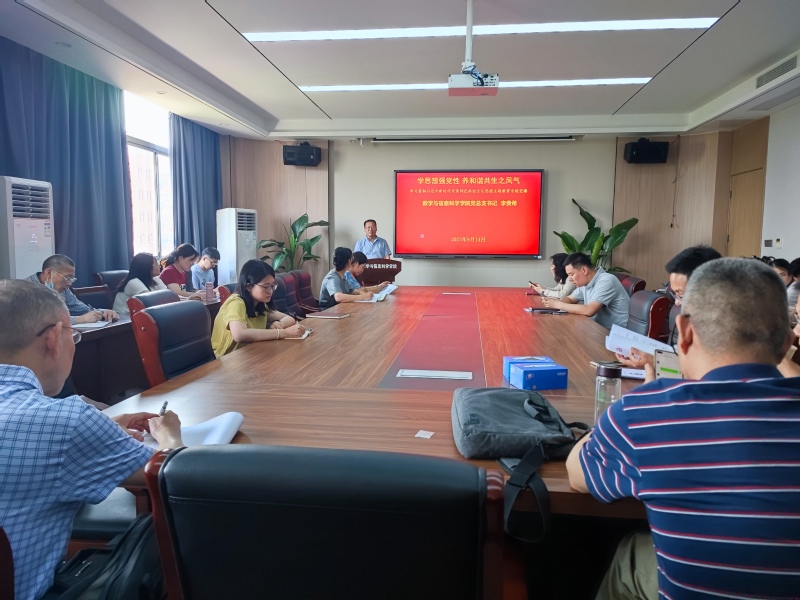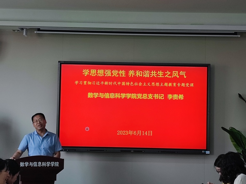 6月14日下午,在博雅楼3601会议室,党总支书记李贵希以《学思想强党性,养和谐共生之风气》为题,讲授学习贯彻习近平新时代中国特色社会主义思想主题教育专题党课。伟德国际1946源于英国全体师生党员,集中聆听了党课。党课由学院党总支副书记丁雯主持。