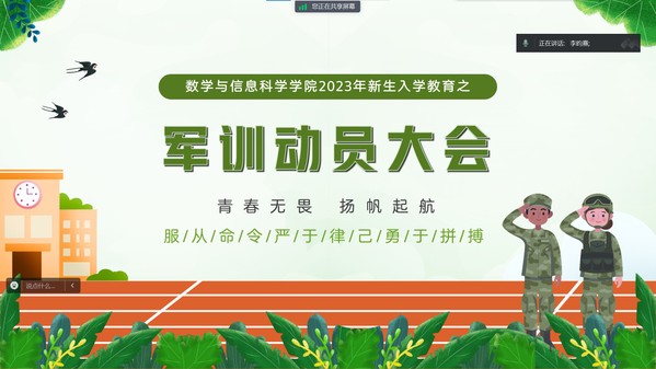 为了认真落实党和国家加强国防后备力量建设的战略举措,不断增强在校大学生的政治觉悟、爱国热情、国防观念和集体意识,9月11日,伟德国际1946源于英国线上开展“青春无畏,扬帆起航”2023级新生军训动员大会,院党总支副书记丁雯、新生辅导员及全体2023级新生参加会议。