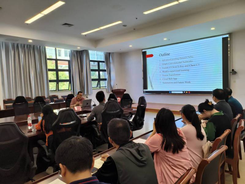 张教授是作为2019-2023年Clarivate全球高被引科学家,合著400多篇同行评审文章,其中有超过60篇ESI高引论文和6篇ESI热门论文。他担任了Neural Networks、IEEE TTS,IEEE TCSVT,IEEE JBHI等副主编,曾担任60多个国际会议(包括20多个IEEE或ACM会议)的大会级别主席。在给伟德官网专业教师的报主要告围绕医学图像分析的高级信息科学与技术进行,旨在提升大家的学术视野,展开面对面的学术交流。张煜东教授介绍了研究小组在医学图像分析方面的信息科学和技术的工作和进展,尤其是深度学习及其重要网络的研究和应用。张教授的报告分享了很多新思想、新技术和新方法,开阔了大家的视野,并对年轻教师如何做好科研给出了有益的建议。