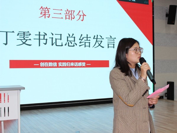 各实践团队代表分享完毕后,学院团总支书记樊琬老师强调,社会实践是增强理论联系实际能力的重要途径,鼓励同学们参与到社会实践中去,从新时代伟大变革的“旁观者”成为新时代高质量发展的“参与者”。党总支副书记丁雯首先对同学们的暑期实践成果表示肯定,随后,她指出暑假社会实践服务活动不仅是广大青年学生磨练意志力、培养品格的有效形式,也是青年学生接受锻炼、增加才干的重要途径,更是青年学生服务人民、奉献社会的重要舞台。