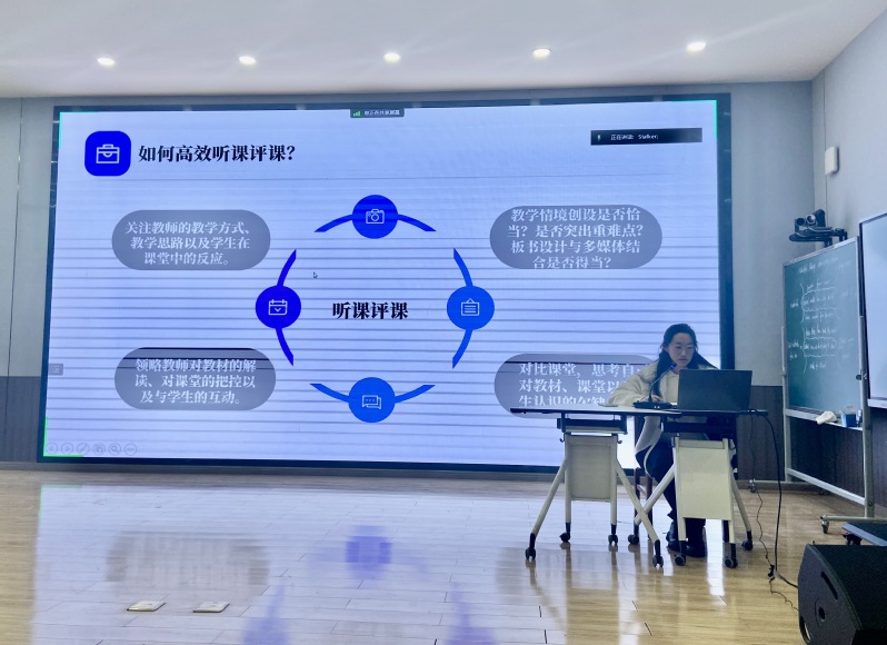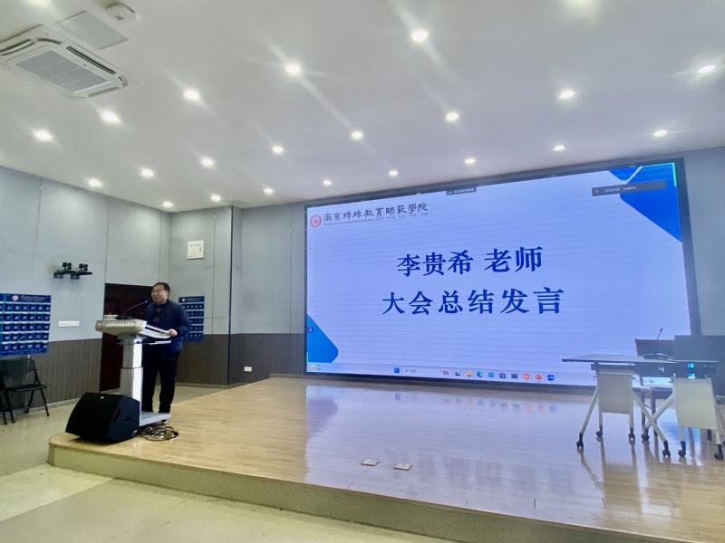 在优秀实习生代表发言环节由2004班曹颖作交流发言,她全面细致地分享了自己在实习期间的诸多收获和感受。从如何钻研教材、分析学情、设计教学、研究板书与多媒体应用备好课,到如何模拟授课、关注学情、师生互动、突出学生主体性上好课,再到如何高效地听课评课以及做好班主任工作,她如数家珍地讲述了实习期间的成长和见闻。她以“纸上得来终觉浅,绝知此事要躬行”的实践指引高质量地完成各项实习工作,并为大家带来一场精彩的分享报告。