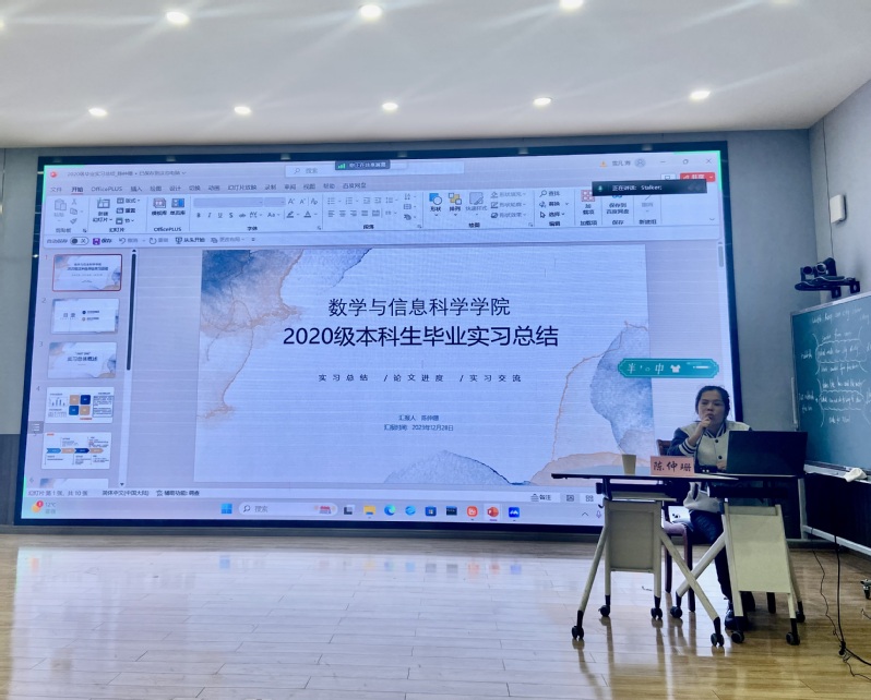 陈仲珊副院长在发言中从实习动员、实习分配、实习上岗、实习调研、实习检查等方面全面回顾了学院对于实习工作的部署和推进,她强调了实习对于同学们成长成才的重要意义,肯定了实习生在实习期间的良好表现。她还从专业方向、实习类型、实习单位、实习过程四个方面的差异分析了实习面临的新特点和新形势,总结了实习工作中的经验和方法,她认为实习生的意见和建议对于优化今后的实习管理工作,提升人才培养质量都有重要意义。她还对毕业论文工作提了要求,提醒同学们多和指导老师沟通,提高毕业论文质量。她希望同学们能够将实习经历转化为宝贵的经验财富,祝愿各位同学在未来求职、求学、创业的过程中取得满意的成果。