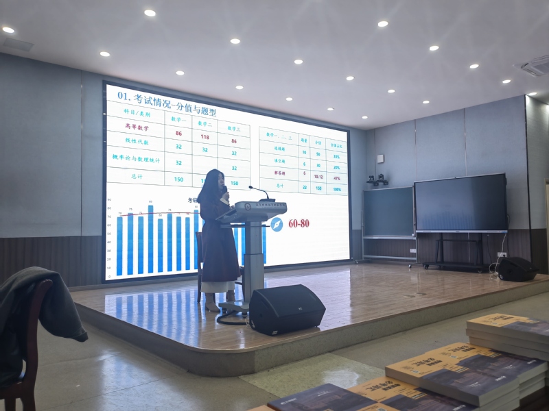 为了让学生更清晰的认识考研数学,李冠亭老师向大家介绍了考研数学试卷题型结构及分值比例,还分享了一些往年的考研数学试题,希望能够帮助学生在备考过程中更好地掌握重点和难点。此外,李老师强调,考研在备战中要制定正确的复习策略,只有抓住核心关键点进行知识点的整合与复习,才能实现效率和质量的统筹兼顾,鼓励学生遇到问题多了解、多咨询。