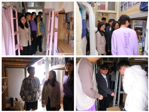 走访过程中,老师们对宿舍卫生达标、安全达标的宿舍给予了高度肯定,并与学生亲切交谈,倾听帮助解决同学们急难愁盼的问题;引导同学们与室友和睦相处,爱护寝室卫生,用高要求管理自己,把目标管理和价值观确立融入日常学习生活,共同构建温暖、舒适、安全的宿舍环境,塑造积极向上的宿舍氛围;叮嘱同学们务必时刻注意用电安全,杜绝安全隐患。此外,老师们还向同学们普及人身财产安全及防范电信诈骗等方面的知识。