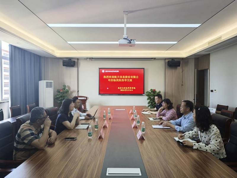 李贵希书记对航天信息股份有限公司一行人员的到来表示热烈欢迎,并介绍了学校的发展特色、学科特点等情况,对学院与企业在学生实习实训、科研共享、大学生创新创业等方面开展合作提出希望。