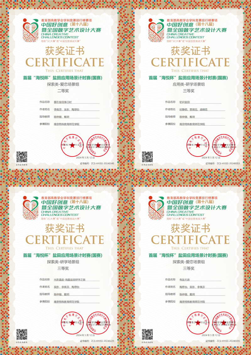 近日,首届中国好创意“海悦杯”中国好创意盐田应用场景72小时计时赛(国赛)在天津开赛。数学与信息科学学院陈仲珊老师和戴玥老师指导的由时静茹、吴彤、贾佩钰、李佩芬和陶思怡等6名学生组建的2支团队参加了本次国赛。代表队作品《爱在盐田落日时》在众多本科院校中脱颖而出,喜获探索类爱恋场景国赛二等奖;作品《初识盐田》喜获应用类研学场景组国赛三等奖;作品《有盐无言》喜获探索类爱恋场景组国赛三等奖;作品《光影晶盐-海晶盐田研学之旅》喜获探索类研学场景组国赛三等奖。