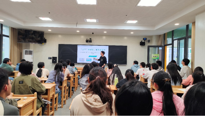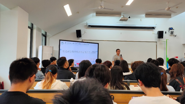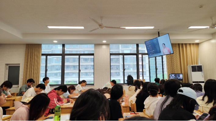 在讲座中,同学们在录播教室仔细聆听了王雅静老师和王俊贤老师为我们带来的讲座。两位老师分别向我们介绍了教学管理方法和新城中学的学校特色,使我们对新城中学有了更深入的了解和认识。
