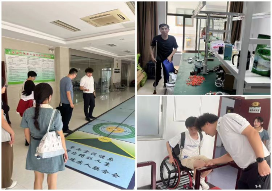 在活动的最后,团队对白云街社区残疾人之家进行了普法与参观。通过发放宣传单和逐一参观重要设施,团队力求提高社区对残疾人需求的重视,推动无障碍环境的进一步改善。在参观的过程中,团队成员主动将这些宣传单发放给残疾人之家及其工作人员,确保他们能够获得必要的法律知识。在参观残疾人之家的同时,工作人员对团队成员进行了详细认真的讲解,以便于成员了解各种辅具以及设施安排的合理性。团队还参观了残疾人之家内的各类辅助器具展示区以及一些人性化设计,目睹了轮椅、助行器、坐便椅等不同辅具的实用性和多样化,注意到电梯里刻有盲文标识的按钮、安装在墙上的扶手以及走道和房间里规范的盲道等,这些设计能够极大地方便障碍人士的使用。