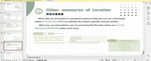 本学期实习学生作为十年级一班的统计课老师进行教学任务。目前为止,完成教案16篇,讲义12篇,ppt71页,已上课23节。