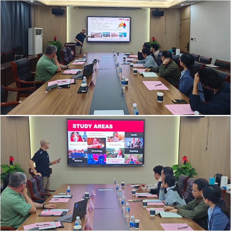 陈仲珊副院长介绍了学院的学科专业建设、教学科研、人才培养等基本情况,重点介绍了伟德官网近些年教师境外访学、考察交流、学生短期研学,及境内外联合培养方面的情况。