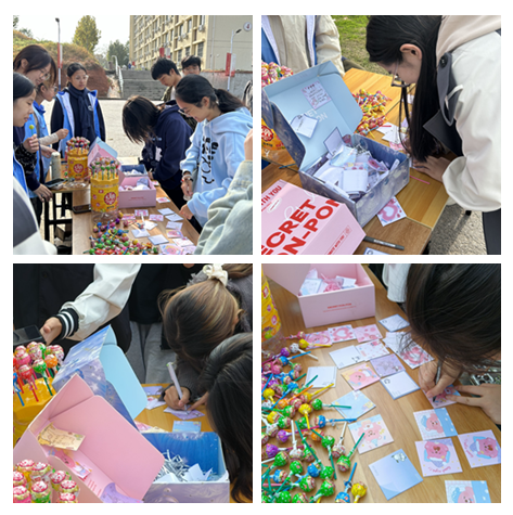 在 “情感互倾诉,乐享解千愁”心理主题活动现场,“小信鸽”心灵驿站的志愿者们准备了“坏情绪”和“小确幸”两种盒子,为同学们提供了一个倾诉心声、分享快乐的平台。同学们纷纷将自己的烦恼、压力等负面情绪写在纸条上,投进“坏情绪”盒子,这意味着他们放下了心中的“包袱”,给情绪一个安全的释放空间。同时,同学们也将自己的快乐经历写在纸条上,投进“小确幸”盒子,这些快乐的纸条将被有烦恼的同学带走,实现了愉快的传递和共享。