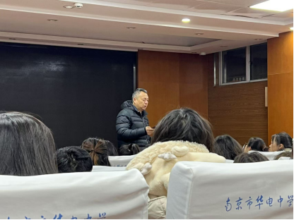 为提高伟德官网教育技术学专业学生的教学技能和综合能力,2024年12月11日,伟德国际1946源于英国组织2022级教技2201班全体学生前往南京市华电中学开展教育见习活动。本次见习活动由伟德官网专任教师昂娟老师带队,华电中学张胜副校长接待。