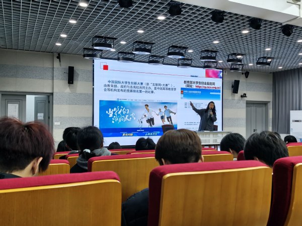 樊琬老师着手于创新创业大赛“我敢闯,我会创”的赛事理念,生动地为同学们阐述了“何为创新创业”、“应该如何去做好双创”,同时,她简要介绍了常见的几类创新创业比赛,包括中国国际大学生创新大赛、挑战杯、公益创业大赛等。其中她重点讲解了大创项目申报书的撰写,详细解读各部分内容。