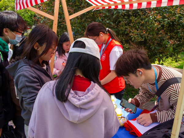 在栖霞校区残障名人园里,星空市集暨闯关活动人气爆棚。“点亮星星的世界”主题活动将知识科普与公益实践深度融合。残疾人手作义卖区陈列着蕴含匠心的香皂、手链等工艺品,每件作品都附有“匠人故事卡”,让每一次交易都成为双向治愈的温暖传递,赋予爱心行动更深厚的情感温度。创意知识竞赛环节设置了“数学自定义触动”“星空纸杯叠叠”等趣味挑战,参与者需在数字报数与团队协作搭建纸杯造型中突破难关,若挑战失败则需在“星轨复活站”完成孤独症知识问答,通过“受挫 - 重生”的沉浸式体验,让大家深刻感受特殊群体在沟通中可能遇到的困境,进一步增进对孤独症群体的共情与理解。