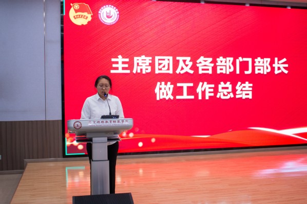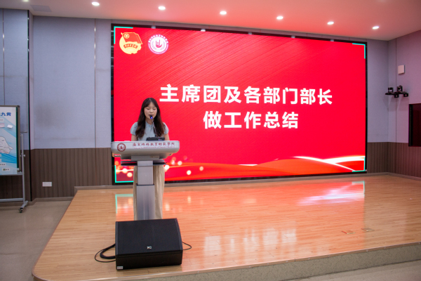 颁奖仪式结束后,主席团与各部门做工作总结。在发言中,学生会轮值主席孙琎首先对全体学生会成员的辛勤付出表示衷心感谢。她回顾了过去一学年学生会开展的各项工作,包括成功举办校园运动会和组织志愿服务活动等重要工作。她特别指出,在全体成员的共同努力下,学生会在服务同学、丰富校园文化生活等方面取得了显著成效。最后,孙琎表示相信在大家的共同努力下,学生会工作必将取得新的更大成绩。各部门部长依次系统梳理了本学期部门工作的开展情况,重点展示了在活动组织、志愿服务、宣传创新、文体活动等方面取得的显著成果,通过详实的数据和生动的案例,充分展现了工作亮点与特色创新。在总结工作成果的同时,也对学生会全体成员的辛勤付出给予高度评价,特别表扬了同学们在活动策划、执行过程中展现出的责任心、创造力和团队协作精神。正是大家的积极参与和努力工作,才使得各项活动得以顺利开展并取得优异成绩。