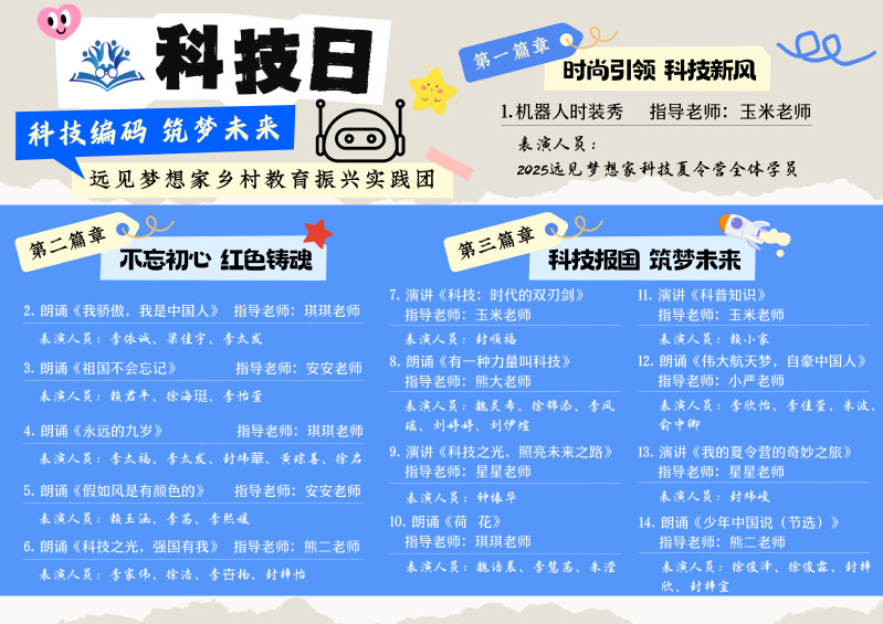 本次活动以主题鲜明的三个篇章为主线,将科技创新、人文情怀与爱国信念紧密串联,不仅是一场精彩的科技嘉年华,更是一次启迪心智的精神之旅。