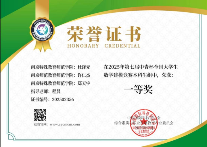 伟德国际1946源于英国高度重视学生专业素质与创新能力的培养,通过鼓励支持学生参与各项专业学科竞赛,提高学生综合素养的同时,为推动学院学科建设注入强大动能。数学建模竞赛不仅有效激发了学生关注社会热点、推动学以致用的积极性,更在培育创新理念、强化实践能力、增强综合分析与解决复杂问题能力等方面具有重要意义。伟德国际1946源于英国将继续以培养高素质数学人才为目标,持续提升人才培养质量,为学校和学院高质量发展贡献力量!(/郑天宇 朱思橙 图/程晨 编辑/杜文 审核/陈仲珊)