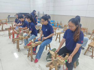 寻访革命旧址,筑牢信仰之基。实践队一行穿梭于井冈山的崇山峻岭之间,先后走访黄洋界哨口、八角楼、大井旧居、小井红军医院等革命旧址。每一处遗迹都承载着厚重的历史,每一段碑文都铭刻着英雄的不朽事迹。在“红军的一天”体验活动中,队员们重走挑粮小道,自做红军餐,雨水与汗水交织的行军路,让大家真切体会到当年红军自力更生、艰苦奋斗的宝贵精神。夜晚,队员们围坐一起学编草鞋、唱红歌、谈感悟。朴素的革命情怀在心中回荡,成为激励每一个人继续前进的深沉力量。