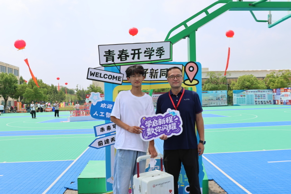 迎新现场设置合影区,构成了一处富有纪念意义的场景。在印有“2025级新生报到”字样的背景板前,有的家长为新生整理衣物,与新生并肩伫立;有的家庭成员围聚一处,将新生环绕其中。这些照片承载着家人临别时的嘱托、对新生成长的欣慰,更饱含着对未来的期许,成为新生开启大学生活极具分量的“开篇纪念”。
