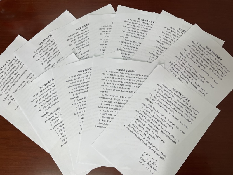 接着,各班级相继召开诚信应考的主题班会,通过剖析考试违纪典型案例、学习考场纪律要求、集体签署《学生诚信考试承诺书》等环节,引导同学们树立诚信考试光荣,违纪作弊可耻的思想观念。各班班主任积极动员并强调,数学学科的学习离不开脚踏实地地积累与严谨缜密地思考,期末考试不仅是对一学期知识掌握程度的检验,更是对同学们逻辑思维与治学品格的考量。希望同学们能够调整心态,从容应战,克服畏难情绪,以饱满的精神状态迎接期末考试的挑战。